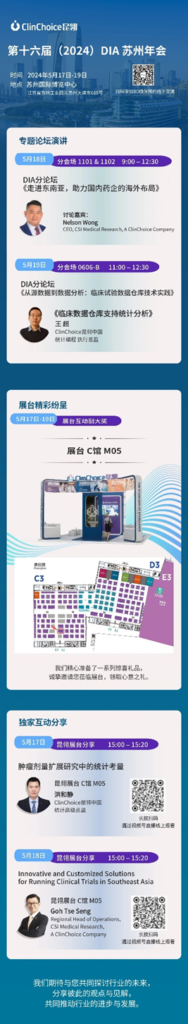 With the booming development of global biopharmaceutical field, the annual meeting of Drug Information International (DIA) has become an important platform for communication, cooperation, and innovation in the industry. ClinChoice, as a leader in the field of CRO, will attend this meeting.